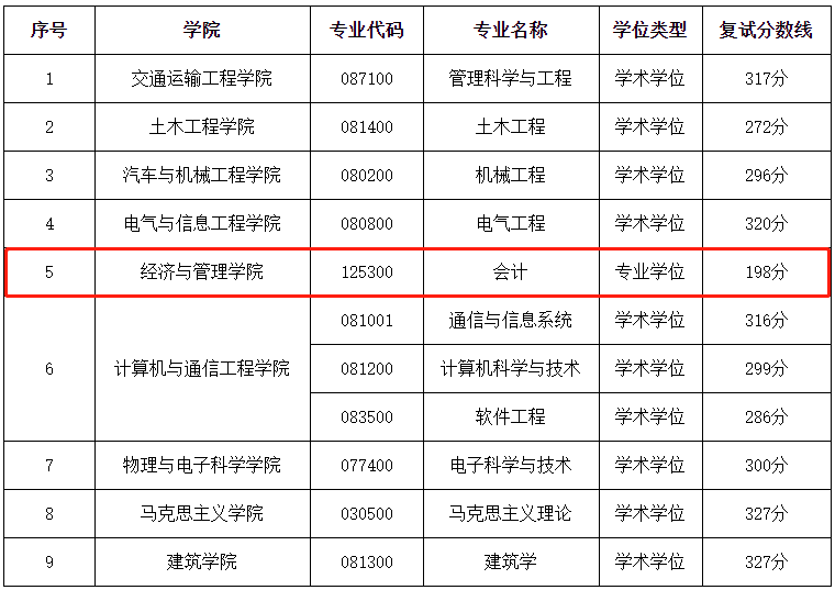 長沙理工大學2020年MPAcc復試分數線的基本要求:198/44/88。