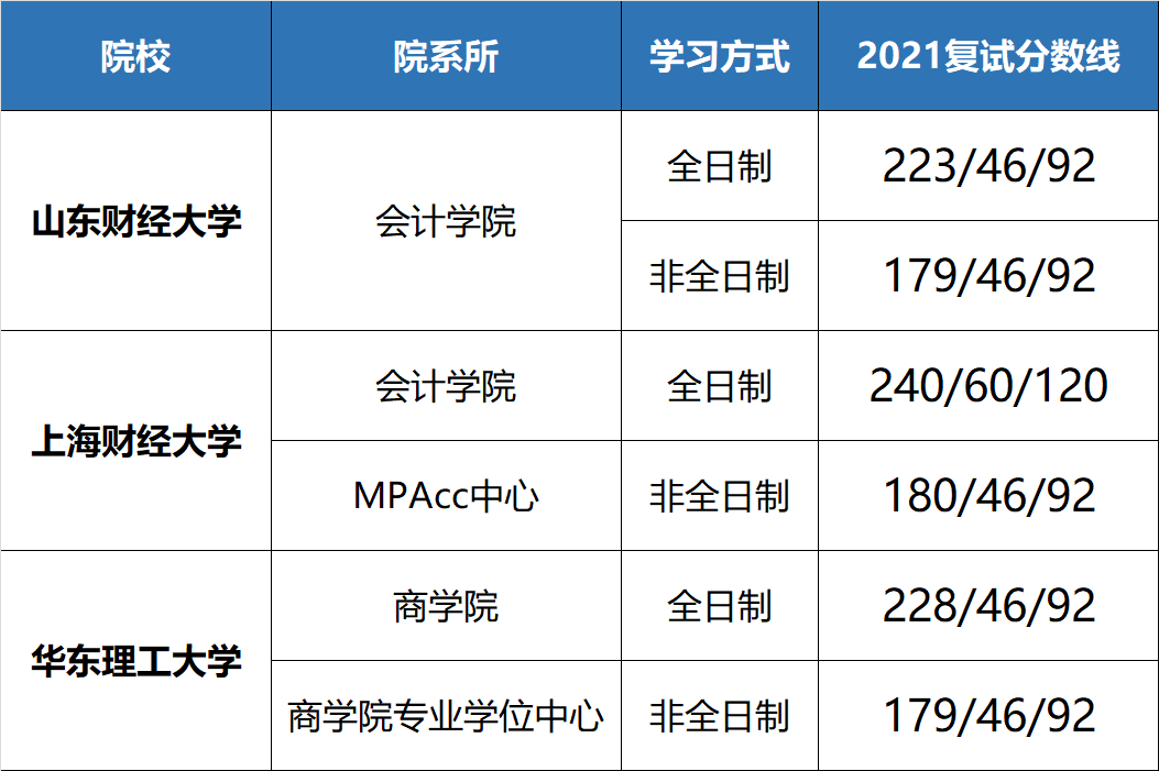 這幾個學校全日制MPAcc復試分數(shù)線比較高,可以算是七大專業(yè)里面比較難考的。但是非全日制MPAcc分數(shù)線卻是國家線或者接近國家線,甚至比其他一些學校的非全日制MPA、MEM專業(yè)分數(shù)線低。