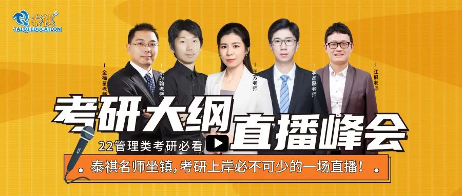 近日,2022年全國碩士研究生招生考試大綱已公布。今年最新的管理類專業招生考試大綱,有哪些變化,該如何應對呢?泰祺教育副總裁、教學教務總監王芳老師邀請泰祺教育英語教研組組長江楓老師、數學教研組組長全福星老師、邏輯教研組組長宗為翰老師、語文寫作教研組組長李晶磊老師,于9月18日晚,通過視頻號直播的形式給大家作了詳細解析!
