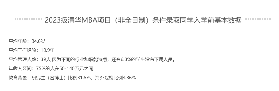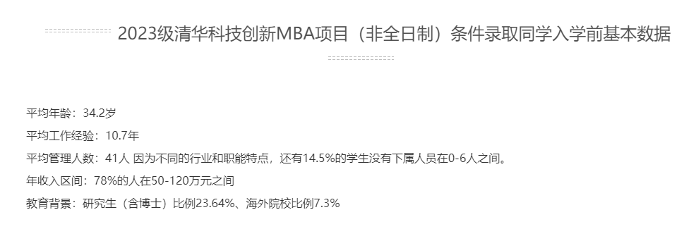 全日制全球MBA項目的平均年齡為27.9歲,非全日制MBA項目為34.6歲,非全日制科技創新項目為34.2歲。