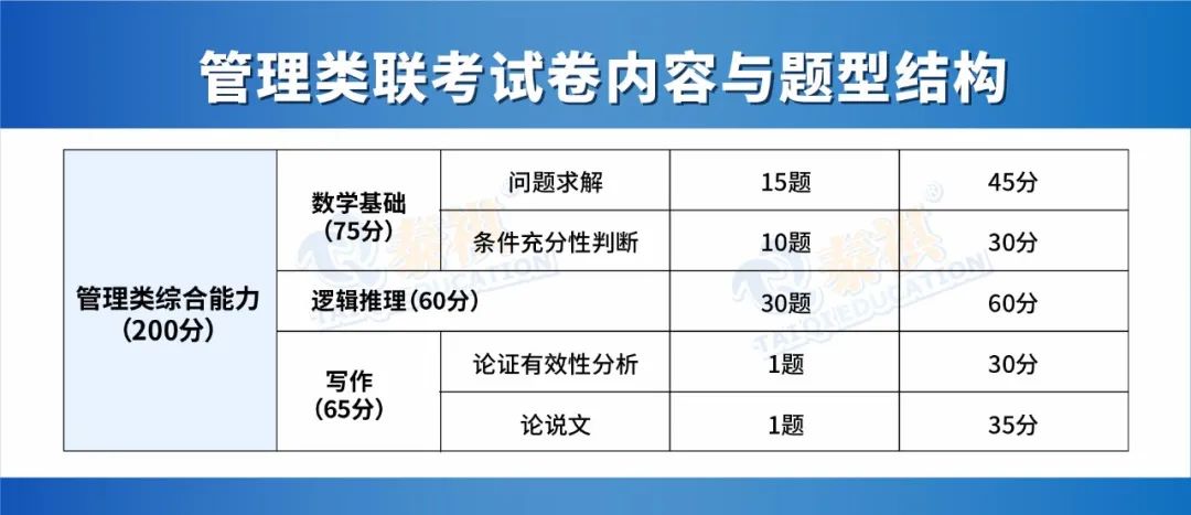 包括數學基礎、邏輯推理、寫作(論證有效性分析、論說文)三大部分,滿分為200分。