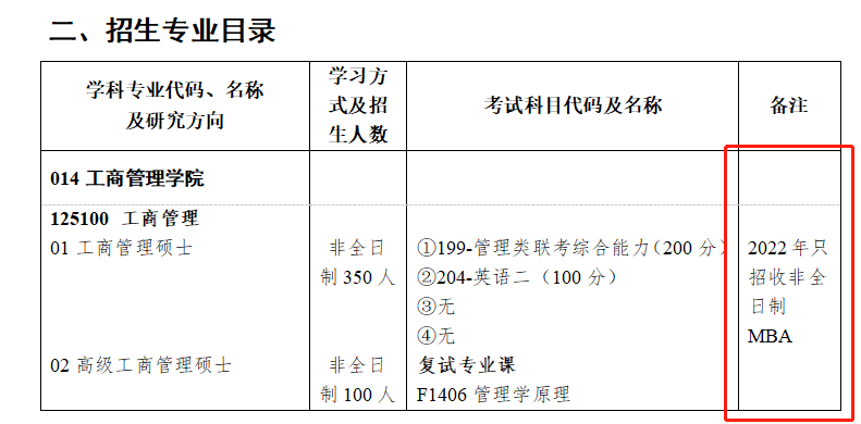 2022年僅招收非全日制MBA,擬招收79人,學制2年。