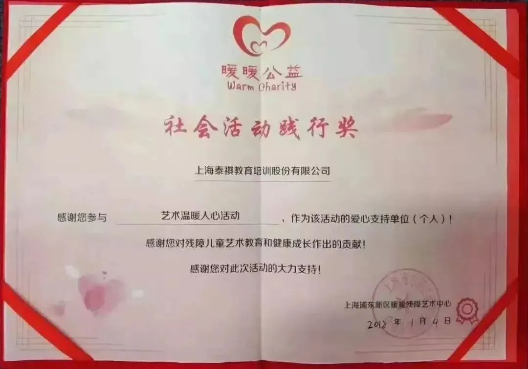 泰祺教育自2002年成立以來,始終踐行“改變人,成就人,讓社會更美好”的企業使命,積極參與參與多項社會公益活動,例如“暖暖公益”、“免費午餐”、為遭遇特大暴雨災害的鄭州捐款等。同時,泰祺作為阿拉善SEE生態會員單位,多次捐助,以支持中國的環保事業,助力中國經濟可持續發展。泰祺以實際行動履行社會責任,為社會更美好盡一份綿薄之力。