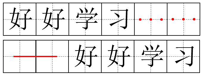 2.問號(hào)、嘆號(hào)在格子左半邊位置書寫: