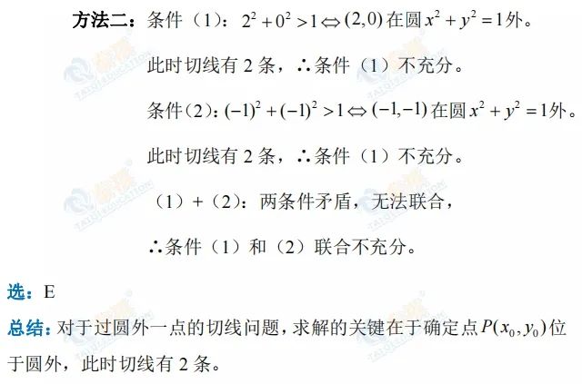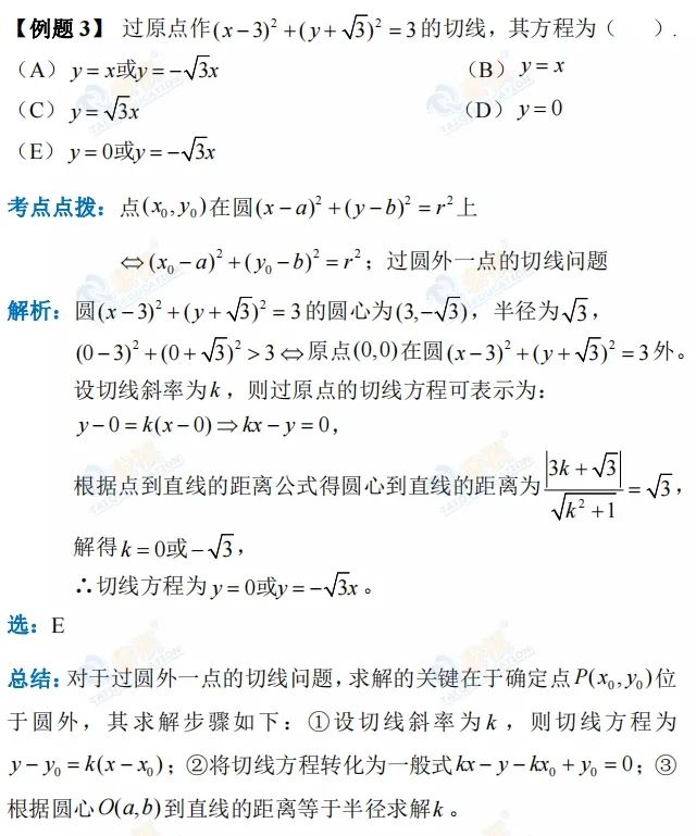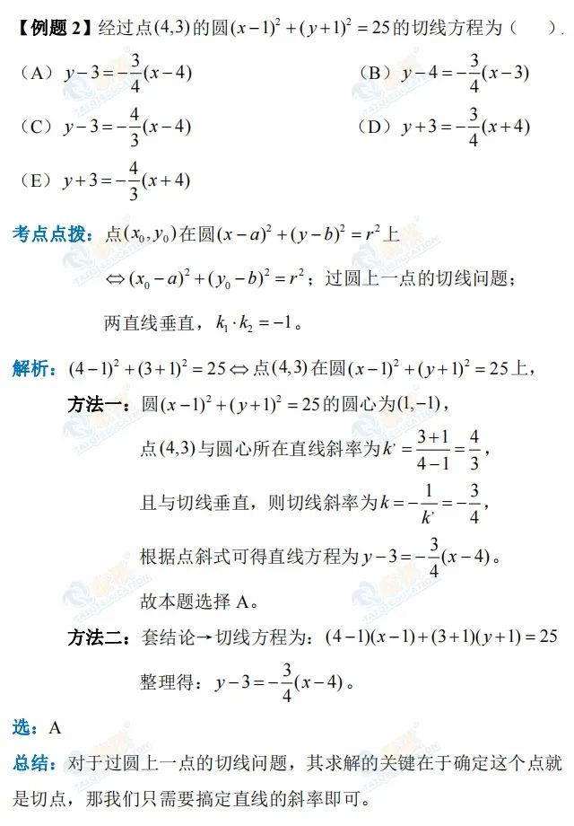 在管綜數學考試中,經常會有這樣一類題目——過一個點作圓的切線。這種題目要怎么做呢?點在圓上和點不在圓上對應的做法是一樣的嗎?接下來我們通過這樣幾個題目帶大家看一下遇到這一類問題應該怎么處理。