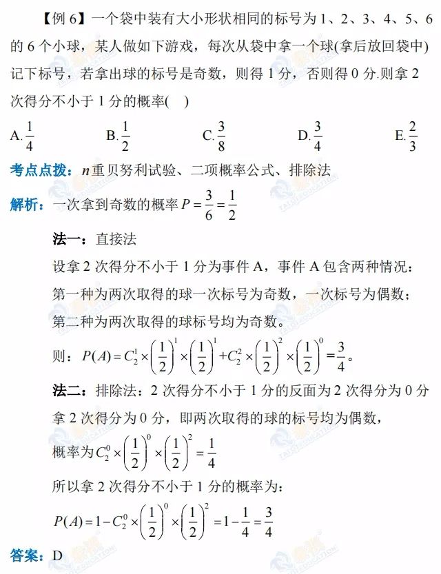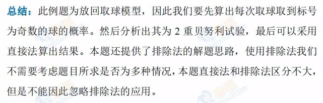分析出題目具體的試驗次數,分清題干和問題,那么就可以很容易求解出相應問題。同學們在做題過程中很容易將結果出現的次數當成試驗的次數,導致很多同學不能判斷出是幾重貝努利試驗,進而無法直接套用二項概率公式做題。