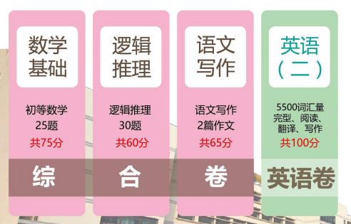 科目二:英語一或英語二或其他小語種(根據(jù)學(xué)校要求)