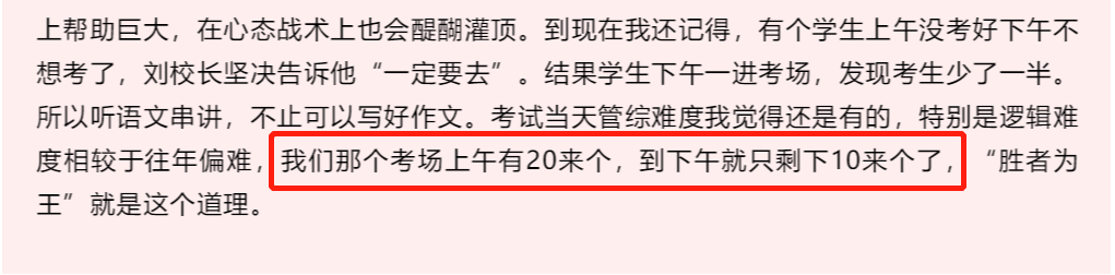 不說別的,管理類聯(lián)考綜合能力的答題時(shí)間非常緊張,很多沒好好復(fù)習(xí)或者沒有掌握考試策略的考生答不完試卷,導(dǎo)致直接失去考試信心,每年都有不少考生上午考完之后,下午直接棄考了!