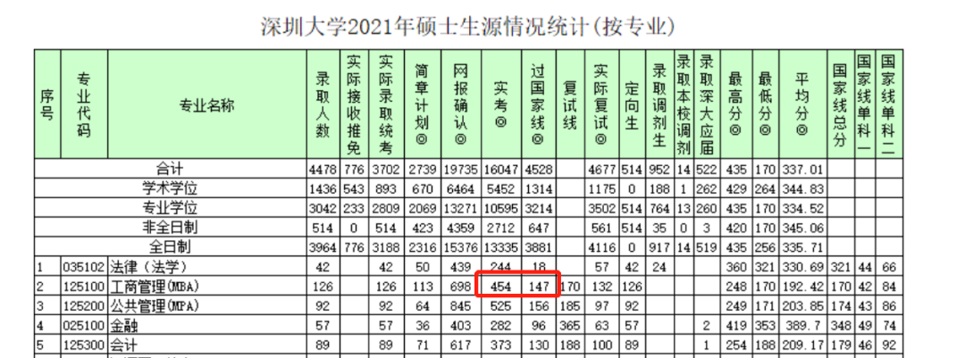 深圳大學(xué)2021年MBA實(shí)考454人,過國(guó)家線人數(shù)僅為147人,過線率僅為32.4%。