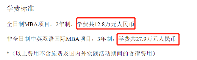 非全日制MBA項目學費上漲了3萬元,為21.6萬元!(2022年學費為18.6萬元)