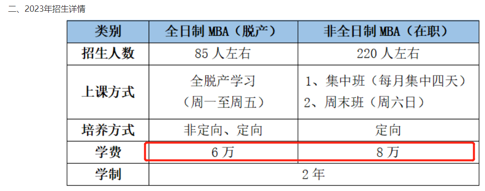 MBA學費共計5.8萬元,上漲了0.8萬元。(2022年學費為5萬元)