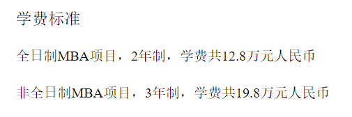 全日制MBA的學費普遍低于非全日制MBA。一般來說,同一所院校的非全日制MBA學費是全日制MBA學費的1.5-2倍左右。全日制MBA學制也更短,一般最短2年;非全日制MBA學制一般2.5-3年。