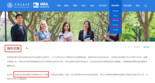 比如交大安泰優秀的MBA學員有機會與高校合作的海外名校進行為期一年的學習,還可以獲得對方學校的學位。