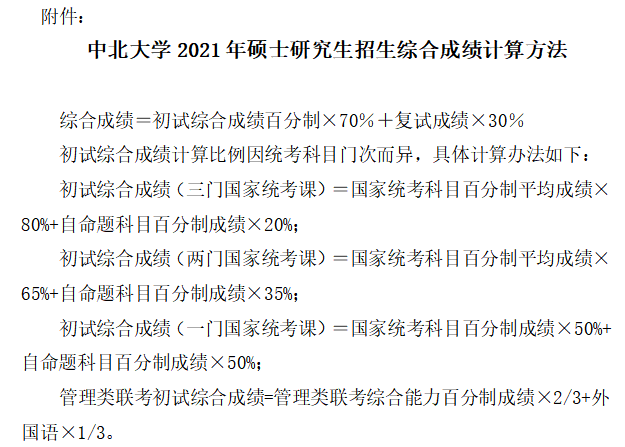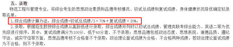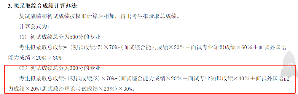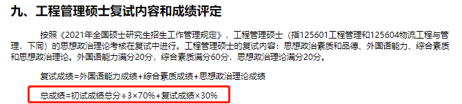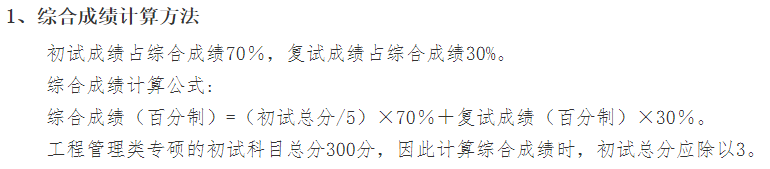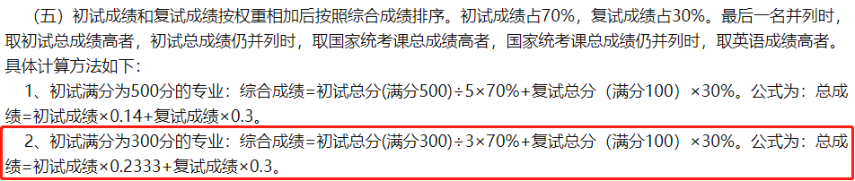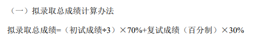綜合成績(百分制)=(初試總分/3)×70%+復試成績(百分制)×30%