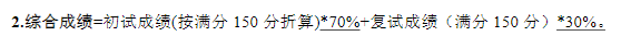 綜合成績=初試成績(按滿分150分折算)*70%+復試成績(滿分150分)*30%