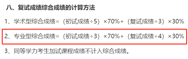 專業型綜合成績=(初試成績÷3)×70%+(復試成績÷4)×30%