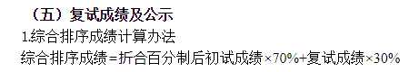 考生總成績計算辦法=初試成績/5×70% + 復試成績×30%