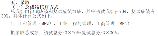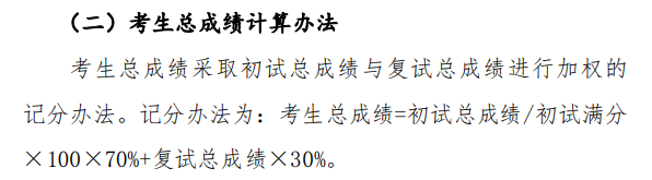 擬錄取總成績(百分制)=(初試總成績/3)×70%+復試成績(百分制)×30%