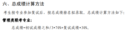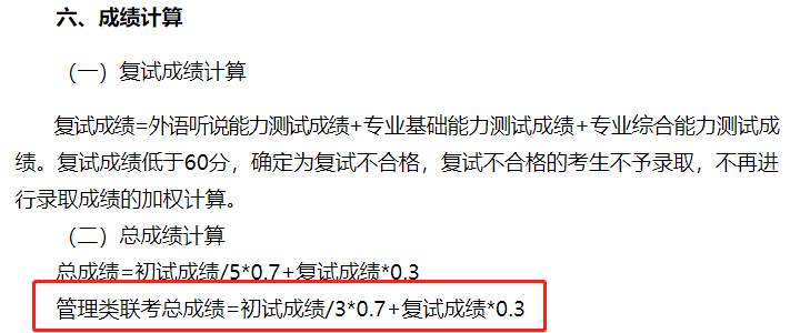 管理類聯考總成績=初試成績/3*0.7+復試成績*0.3