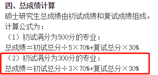 綜合成績=初試總分(滿分300)÷3×70%+復試總分(滿分100)×30%