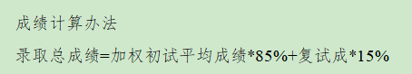 錄取總成績=加權初試平均成績*85%+復試成*15%