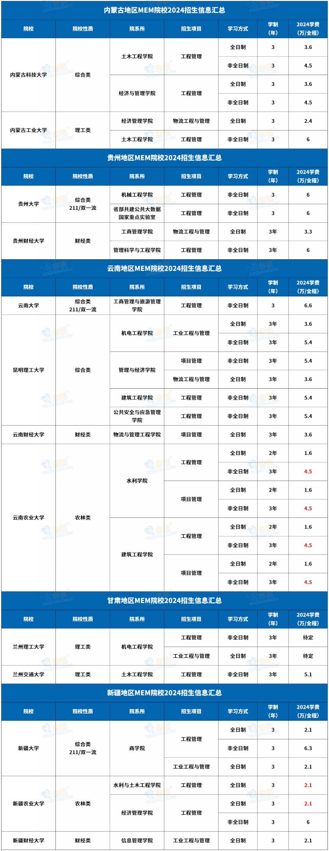 為了助力想考MEM的同學(xué)們更快篩選了解院校,本篇文章特整理了24年全國MEM院校學(xué)費(fèi)學(xué)制(標(biāo)紅的為學(xué)費(fèi)上漲或新增),快收藏起來!