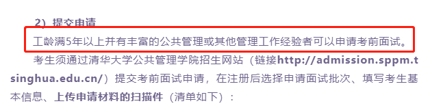 ??清華大學要求工齡滿5年以上并有豐富的公共管理或其他管理工作經驗者可以申請提前面試。