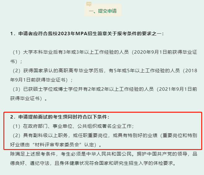 目前開設MPA提前面試的院校比較少,共19所,主要是各地的985和211高校。在滿足基本報考條件外,部分高校還對申請者的崗位和職務、甚至畢業年限有額外的要求。