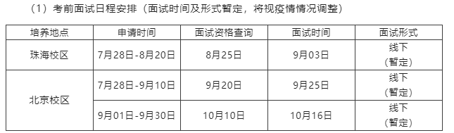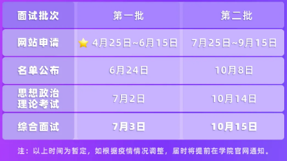 院校于9月30日左右公布“提前面試”名單,10月中旬組織提前面試。