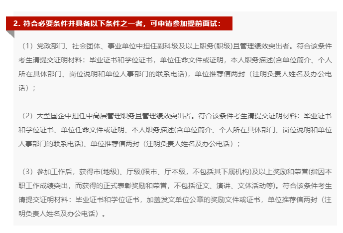工齡滿5年以上并有豐富的公共管理或其他管理工作經驗者可以申請考前面試。