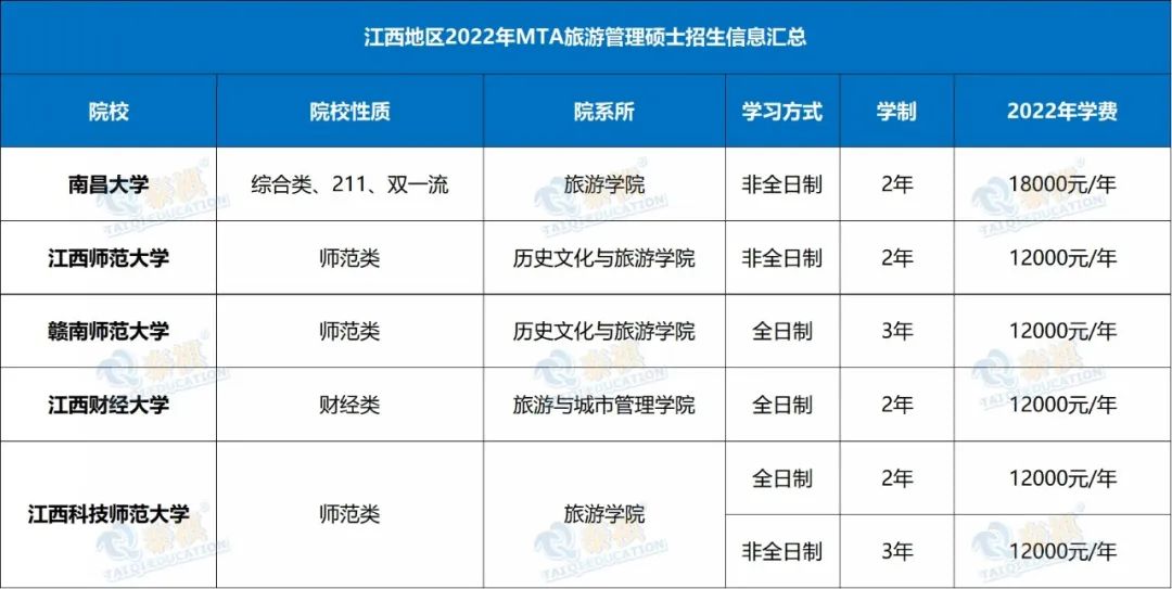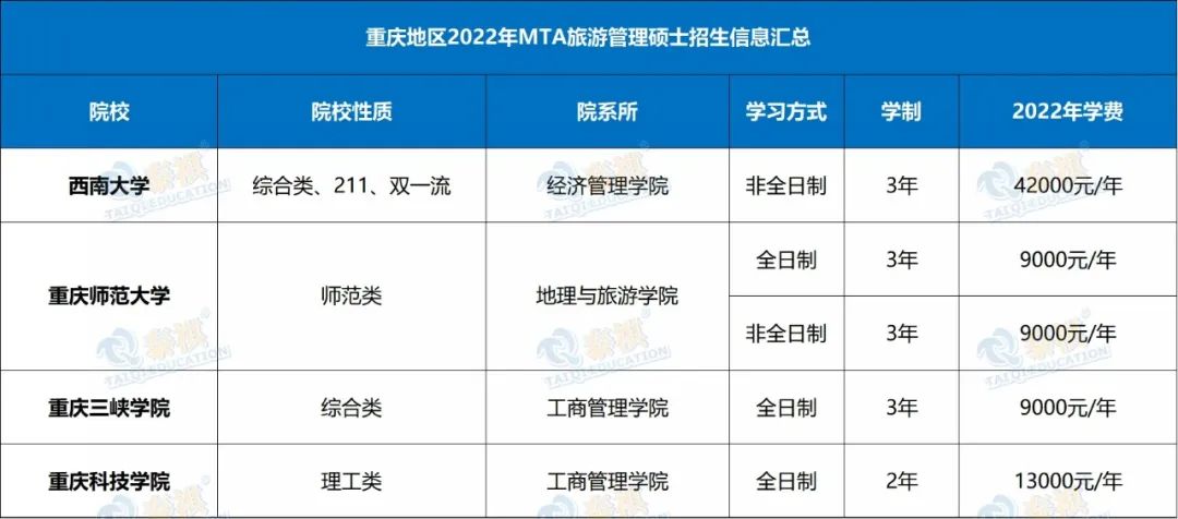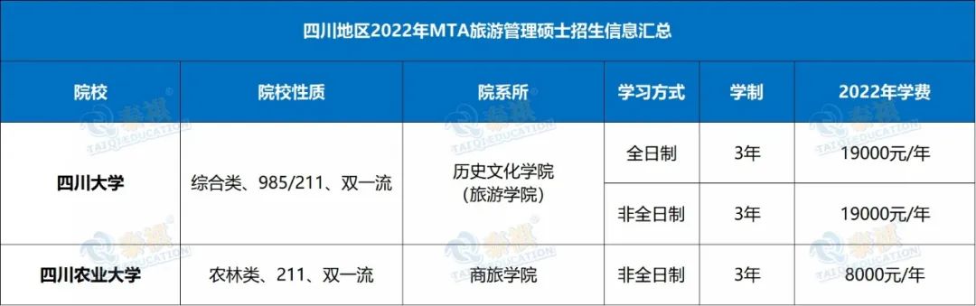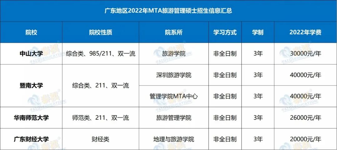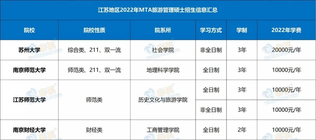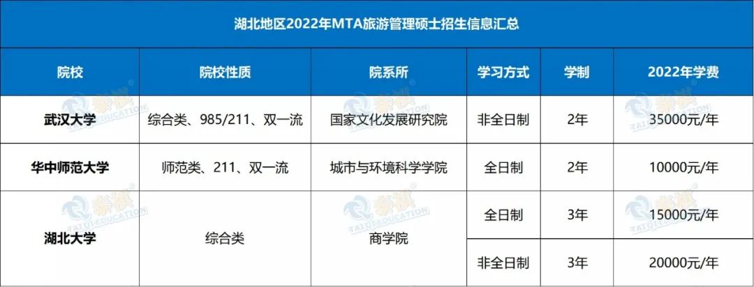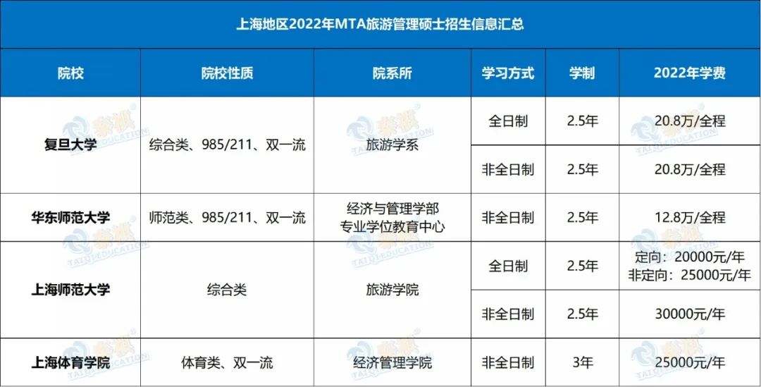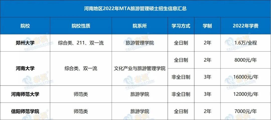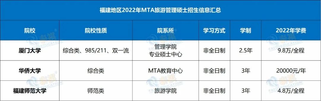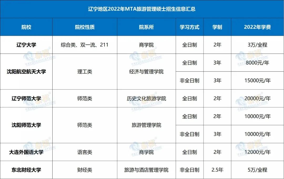 本期匯總了全國MTA旅游管理碩士招生院校2022年學費學制等信息,希望給到大家擇校備考參考。